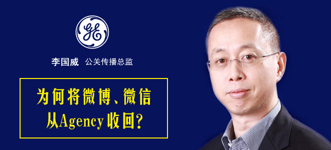 通用电气(中国)有限公司公关传播总监李国威,江湖人称“姐夫李”近日深入分享了GE这两年的数字化营销传播策略和实践经验,包括如何经营微博、微信等社交媒体;为什么将微博微信从agency手里收回,自己运营;他们现在的人员配置是什么样;未来如何规划?